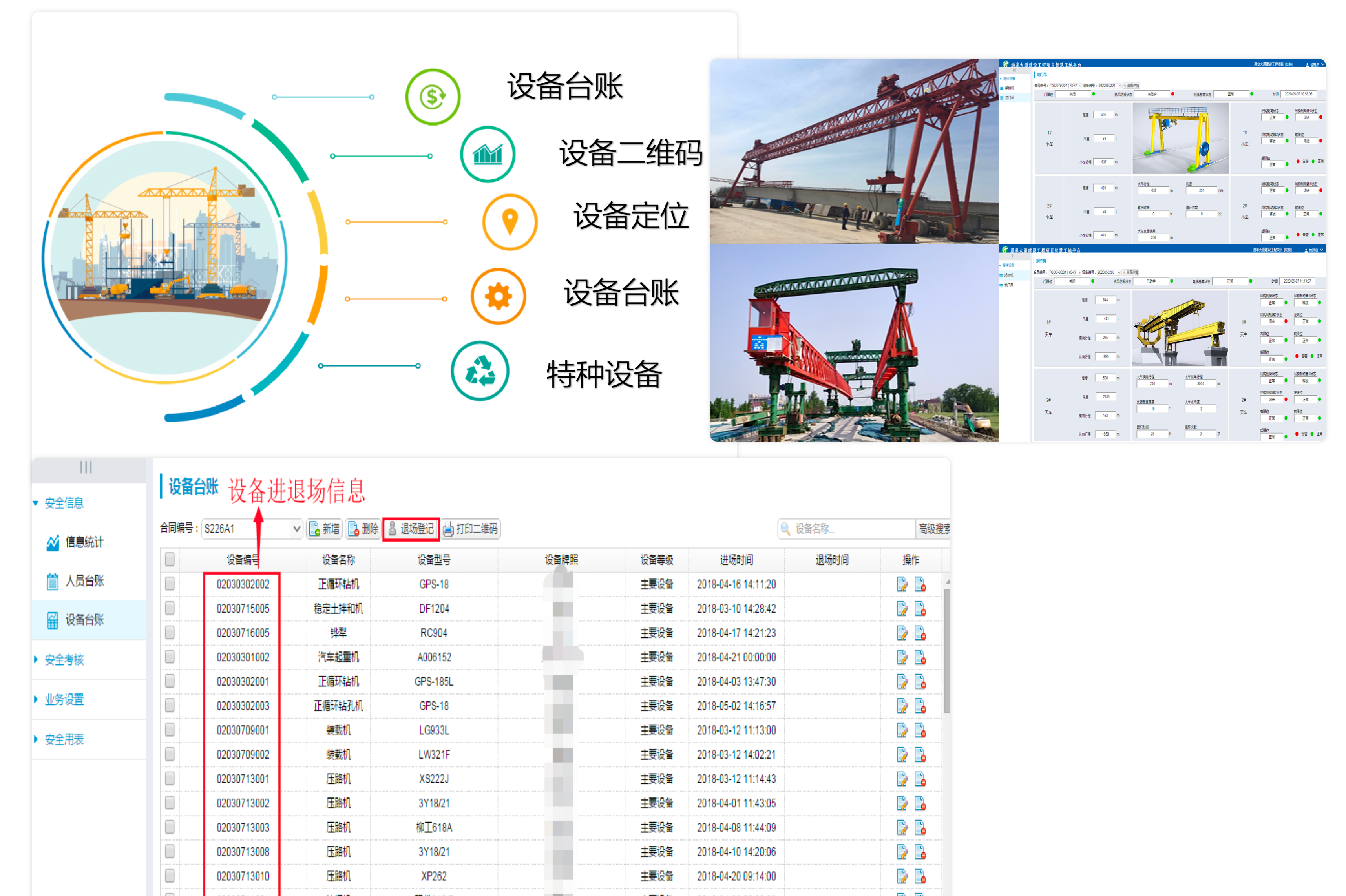 在項目施工過程中會有大量設(shè)備的使用,針對施工設(shè)備進行進出場登記,能有效的了解和掌握項目設(shè)備投入情況,同時對特種